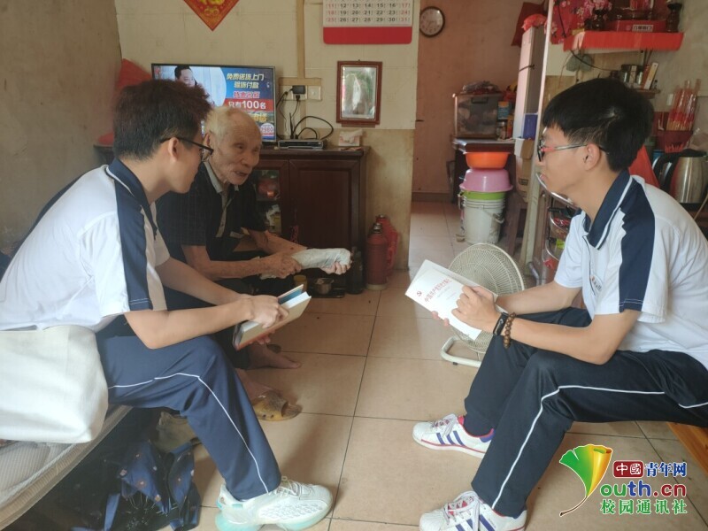 图为团队成员聆听社区爷爷分享他与党的故事。中国青年网通讯员 李德才 摄