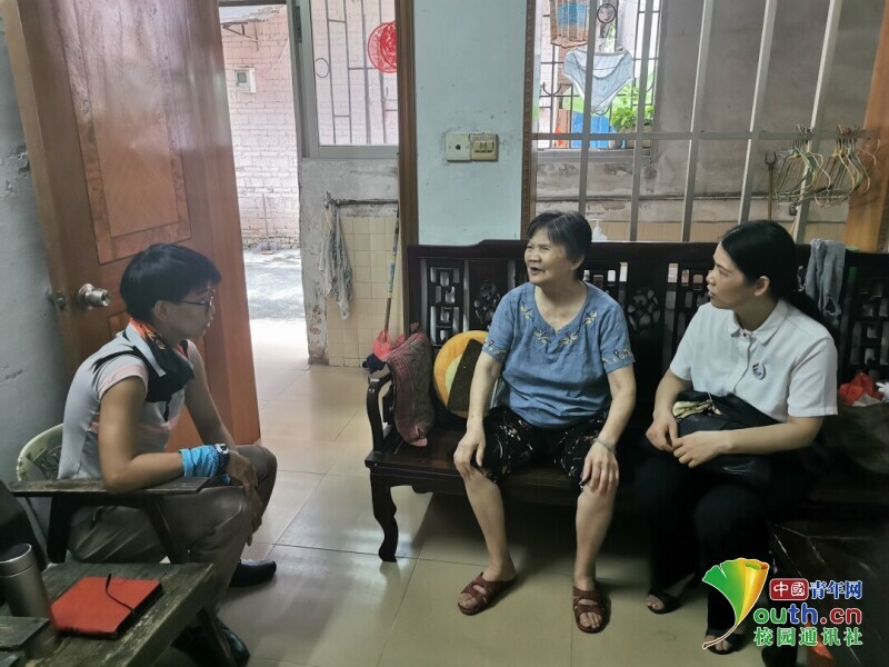 图为团队老师与社区奶奶交谈。中国青年网通讯员 李德才 摄